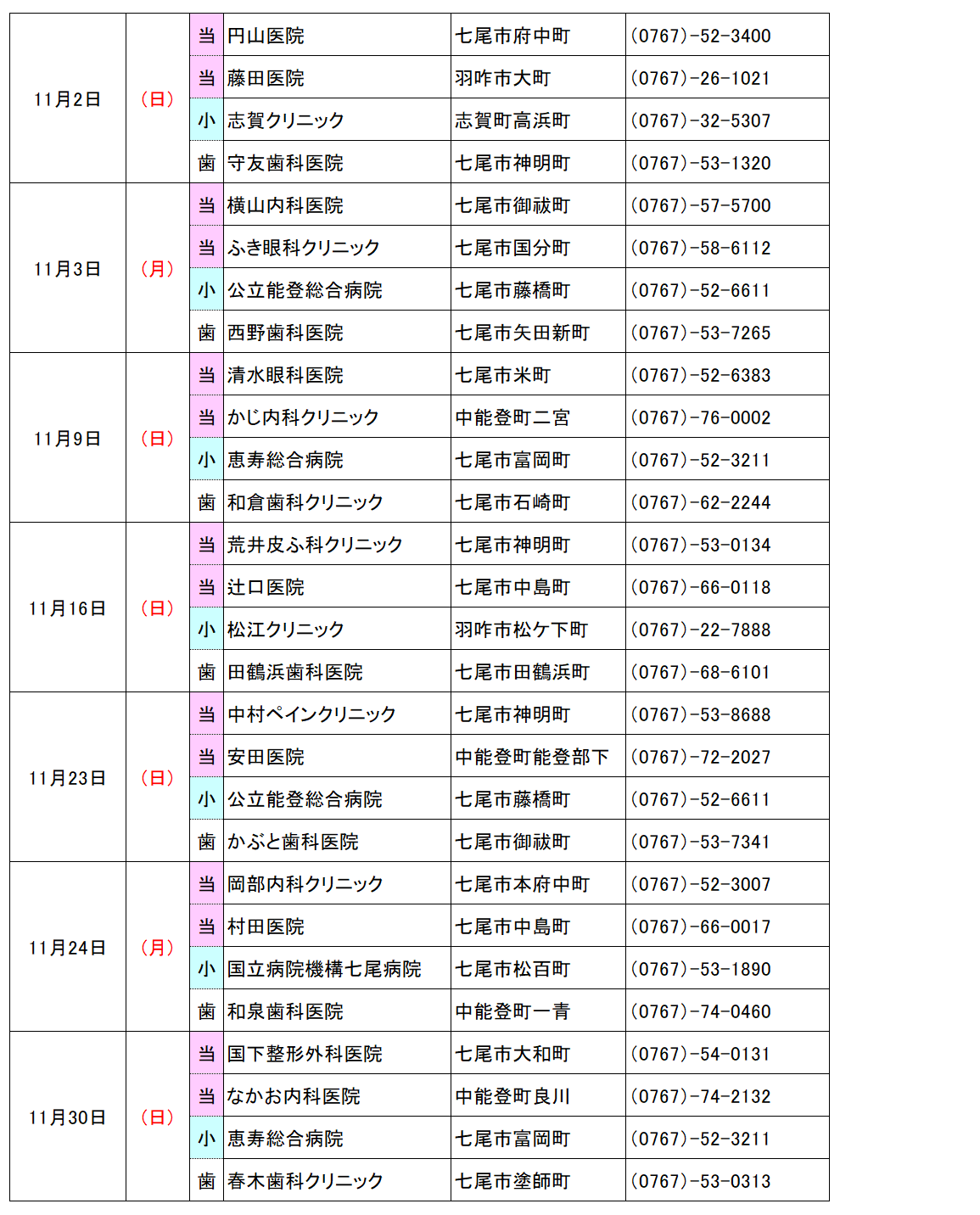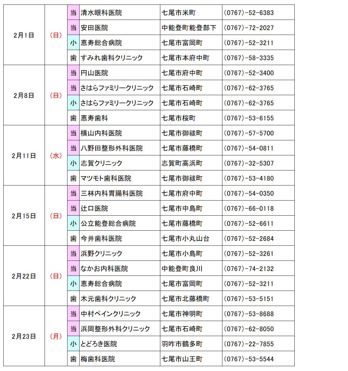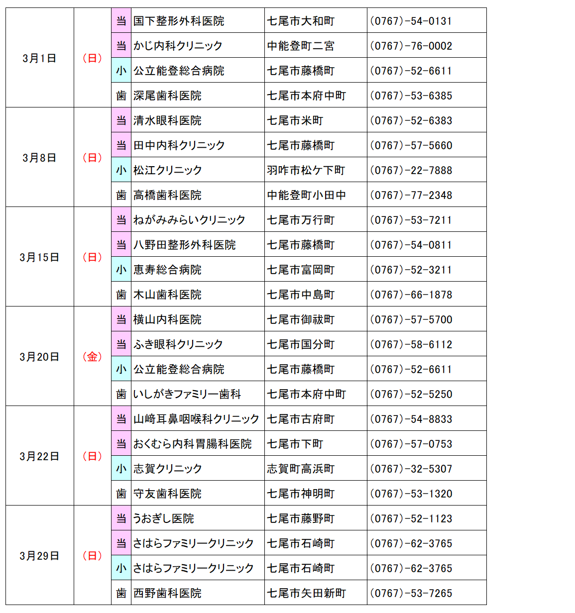 (注意)当番医が変更となる場合がありますので、受診の際には必ず電話をお願いします。